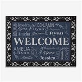 I purchased the cranberry color with our last name in the center, While there's the 3 of us, I put our " formal" names then, our nicknames. So, used 6 spaces and the mat looks great. It's thin enough not to stop the door from opening and the color just looks amazing with the foyer tiles. This was a replacement for a custom mat we had from here that lasted over 6 years and prior to us being a family of 3! A must have mat.