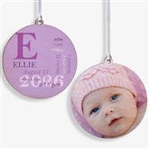 All About Baby Photo Personalized Birth Ornament- 3.75" Wood - 2 Sided