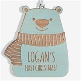 Baby Bear Personalized Wood Ornament- Blue Stain