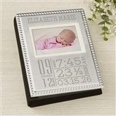 Baby Love Birth Information Engraved Silver Beaded Mini Photo Album