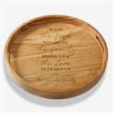 Whether serving guests or using as a decorative accent, the Bless the Food Before Us Engraved Acacia Wood Round Serving Tray will make a statement. The heavy duty solid acacia wood tray is a beautiful piece to add to your serveware or use for home decor.