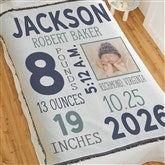 Boy Photo Personalized Birth Stats 56x60 Woven Throw Baby Blanket