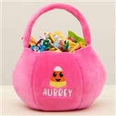 Candy Corn Embroidered Plush Halloween Treat Bag-Pink