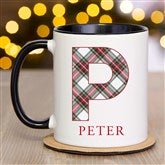 Classic Holiday Plaid Personalized Christmas Coffee Mug 11 oz.- Black