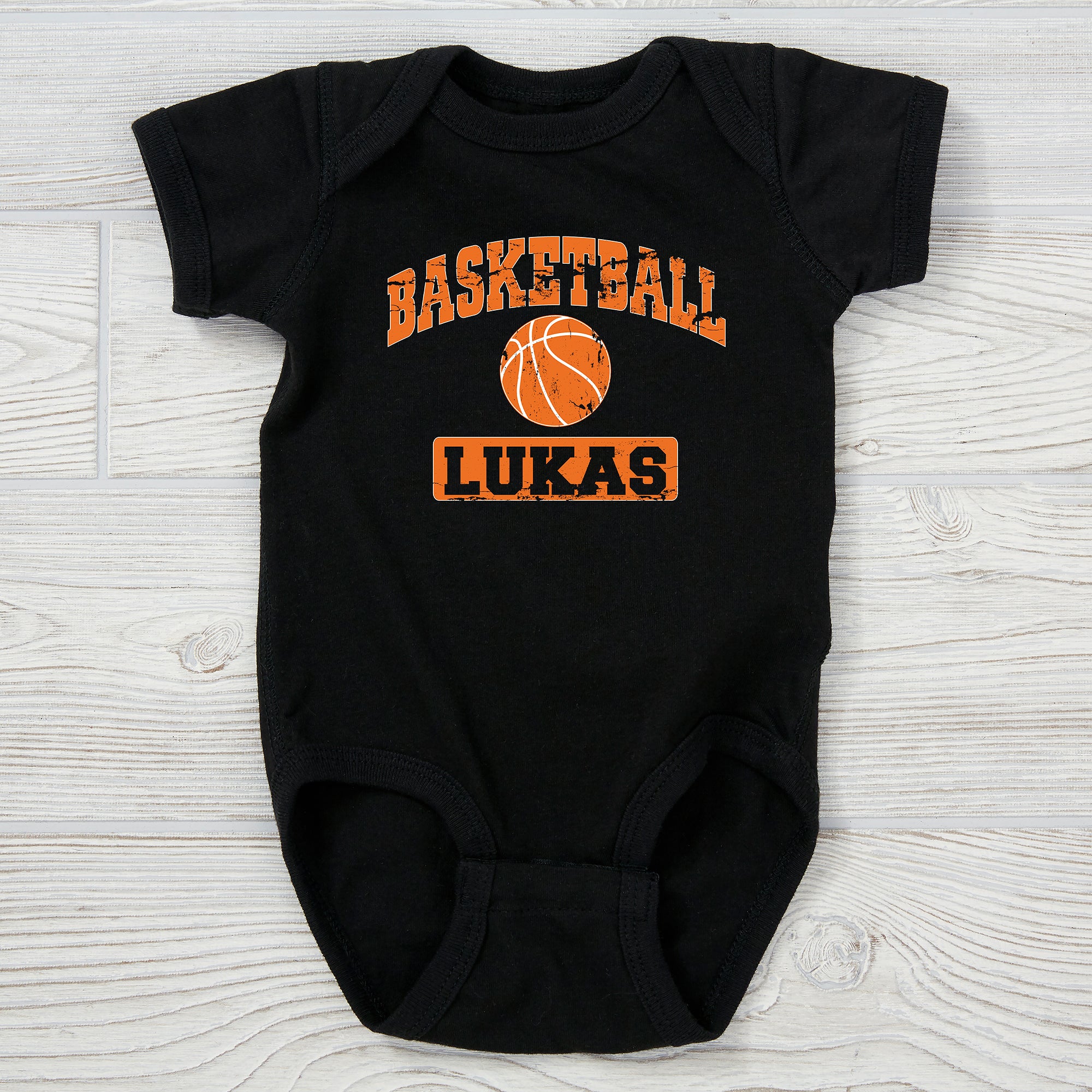 On the field or off, show your love of the game with our exclusive 14 Sports Personalized Baby Clothing! Letter style is meant to be a vintage/distressed look. Letters are not filled in completely.