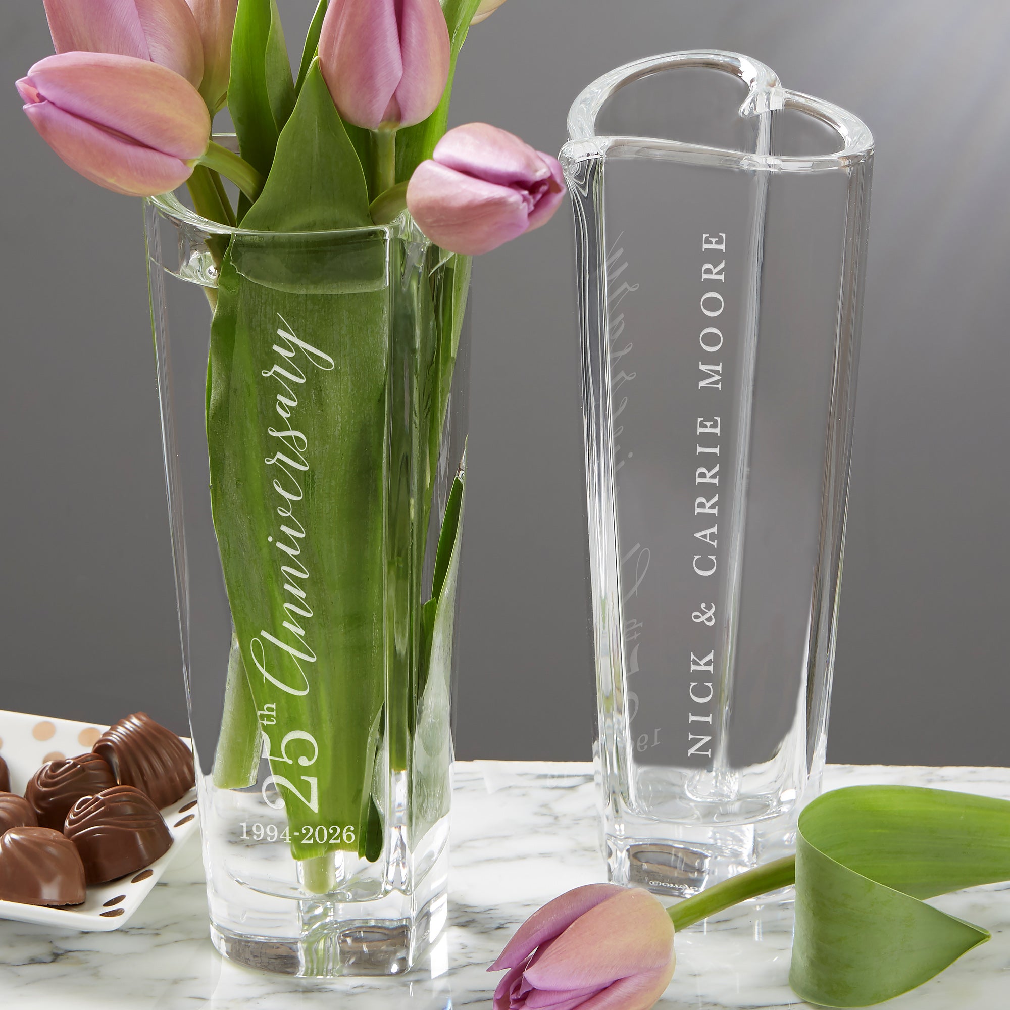 Celebrate your life together when you give our stunning Orrefors Engraved Crystal Heart Anniversary Bud Vase! The custom engraved crystal vase makes the perfect 15-year anniversary gift!