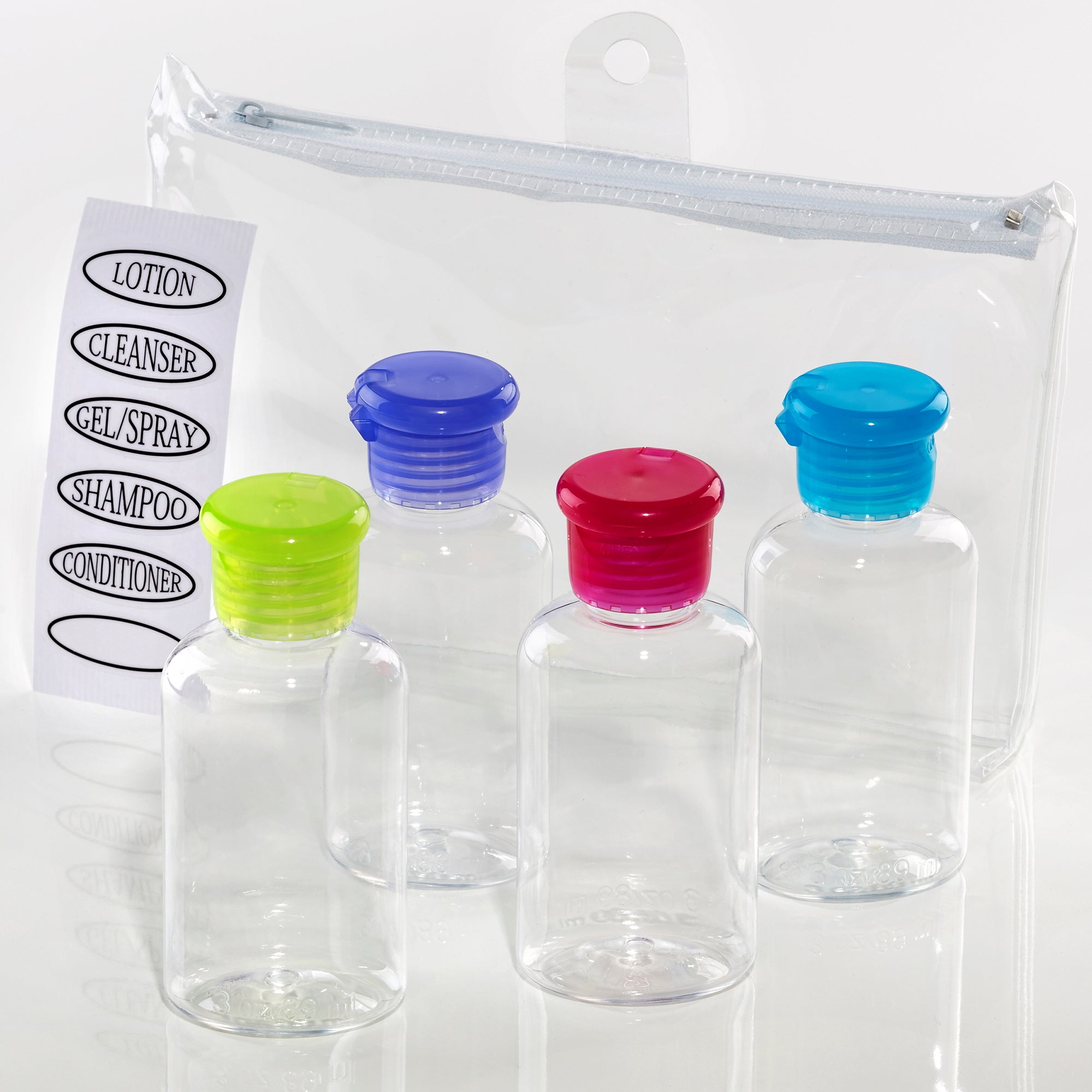 • 4 - 3oz Travel Size Bottles