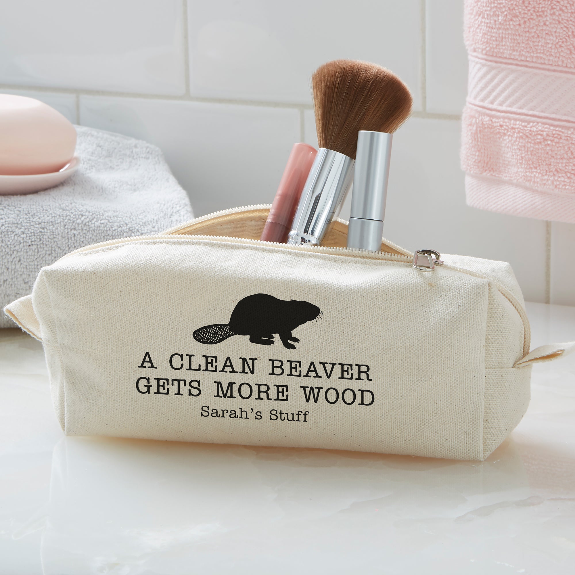 Keep makeup and brushes neat and organized in our A Clean Beaver Gets More Wood Personalized Canvas Cosmetic Case.