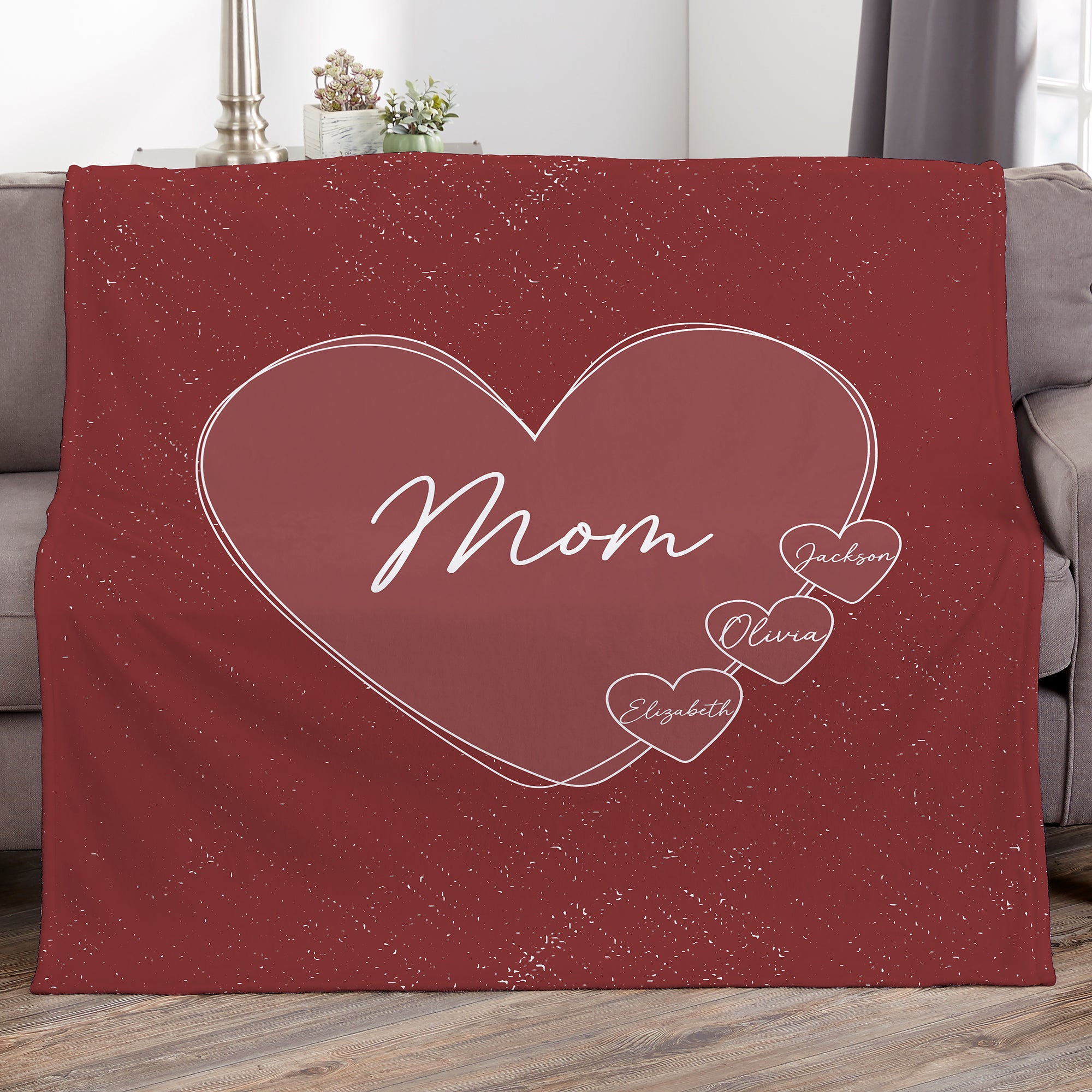 A Mother's Heart Personalized Blanket lets them wrap themselves in luxury and comfort. This thoughtful throw is the perfect gift for Mother's Day or any special occasion.