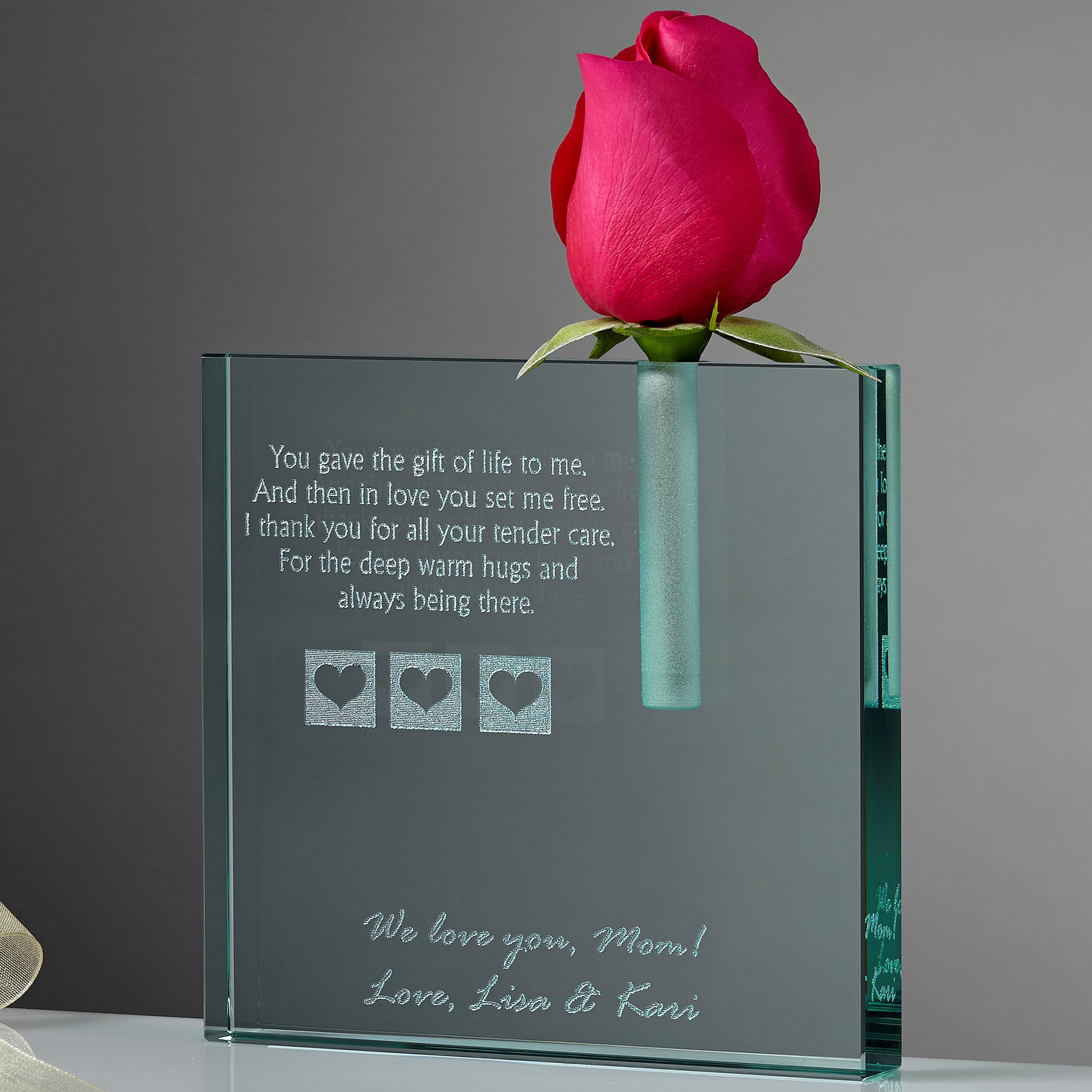 Show your loving appreciation to a woman beyond compare with our exclusive A Mother's Love Blooms Personalized Bud Vase.