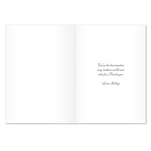 Celebrate that special teacher with this personalized greeting card by artist Vicky Barone. Customize your message on the inside to make this design your very own!