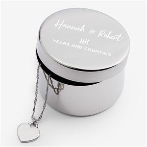 Create a lovely and memorable keepsake for her with our Anniversary Tally Personalized Keepsake Box, a perfect place to store earrings, necklaces, rings and more.