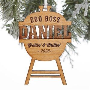 Give your favorite grill master a fun keepsake with the BBQ Boss Grill Engraved Wood Ornament. Makes a wonderful holiday gift or gift topper.