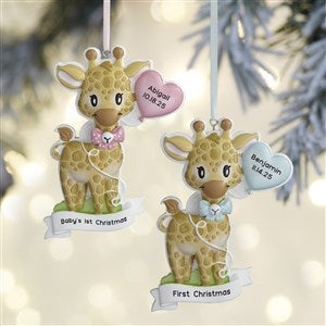 Celebrate baby's first Christmas with our Baby Boy Giraffe Personalized Ornament - the perfect personalized gift for any little boy that is sure to be cherished for years to come!