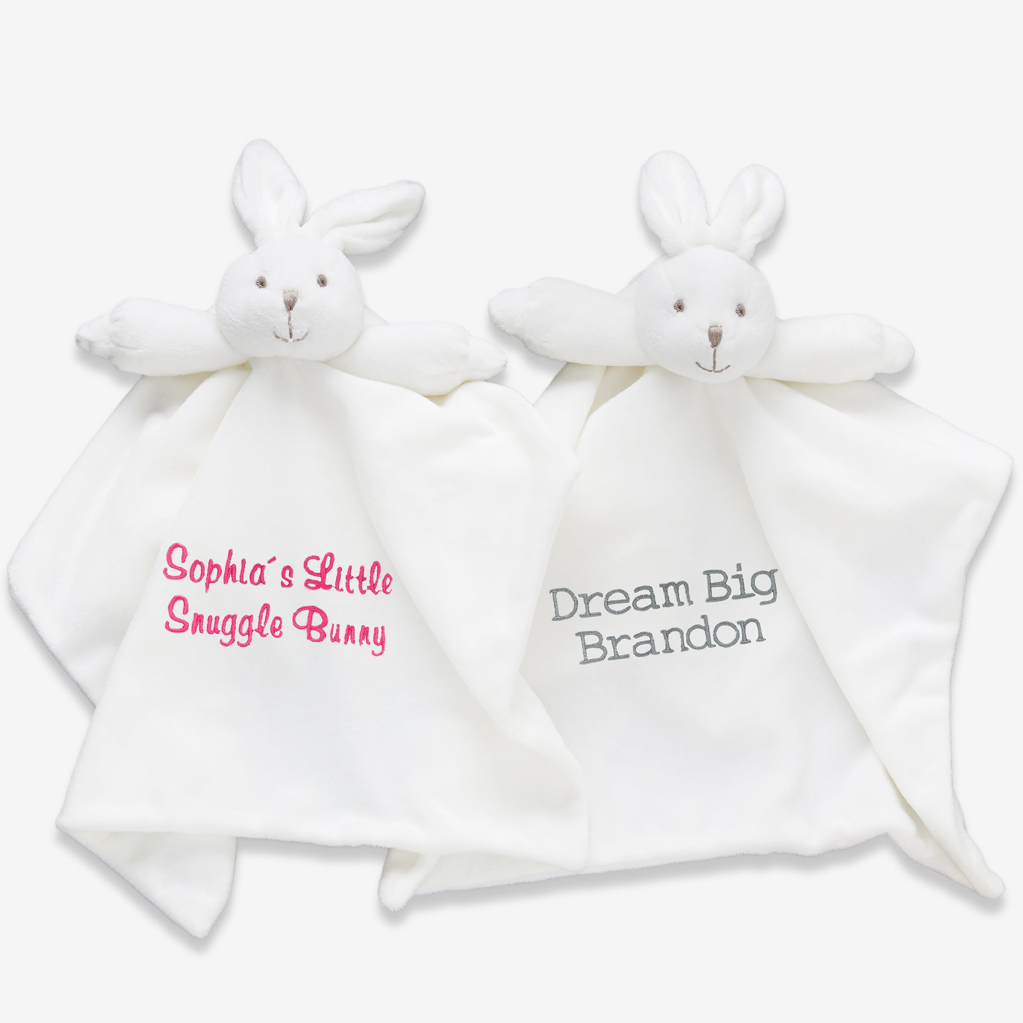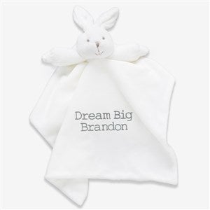 Our Baby Bunny Personalized Security Blanket is a cute and cozy gift for any newborn. Quality crafted of plush, durable fabric to last years from infant to toddler and more.