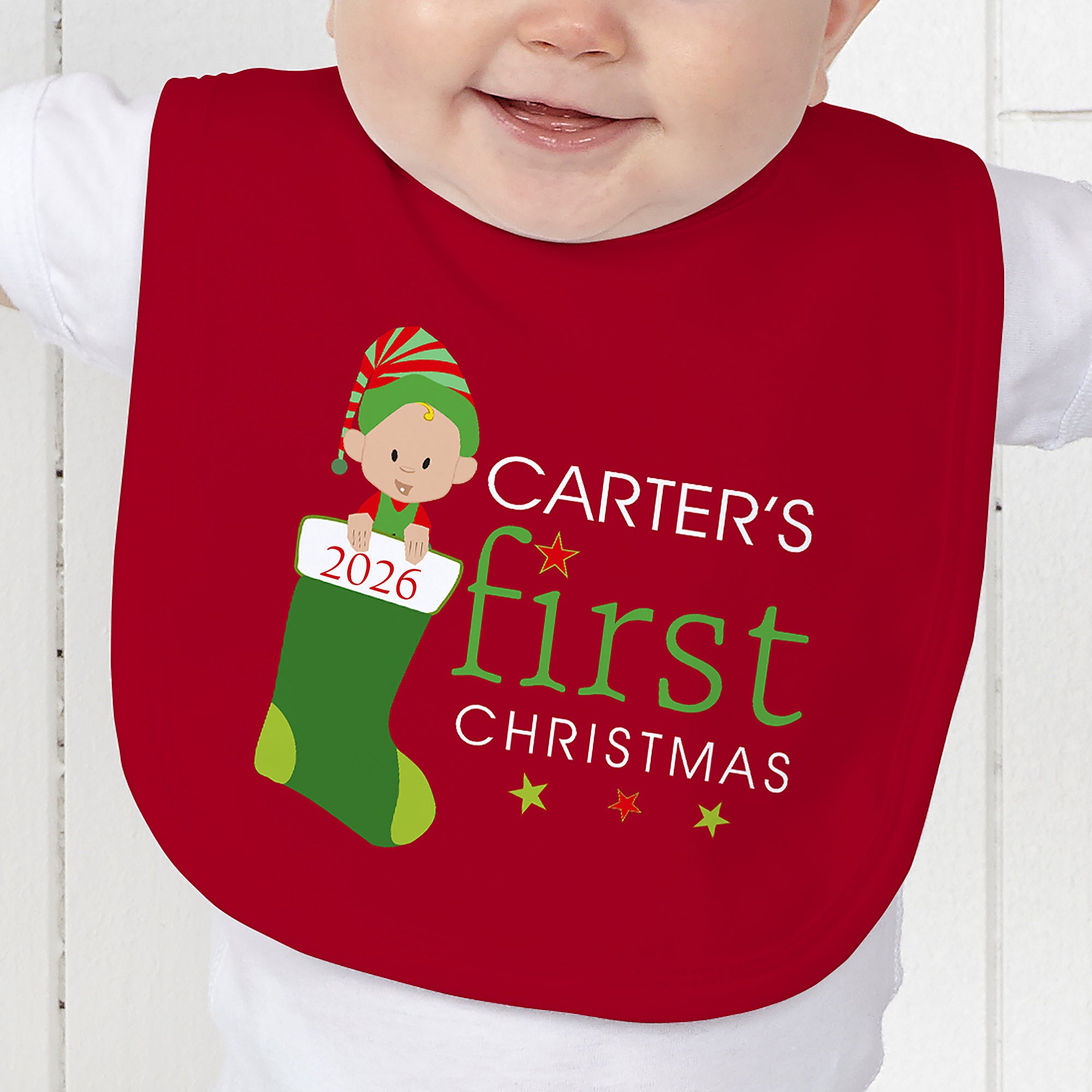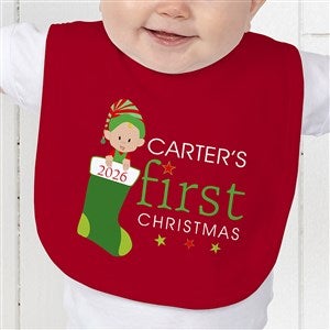Our Baby's First Christmas Character Personalized Baby Bibs will make for great pictures with Santa or at Christmas parties.