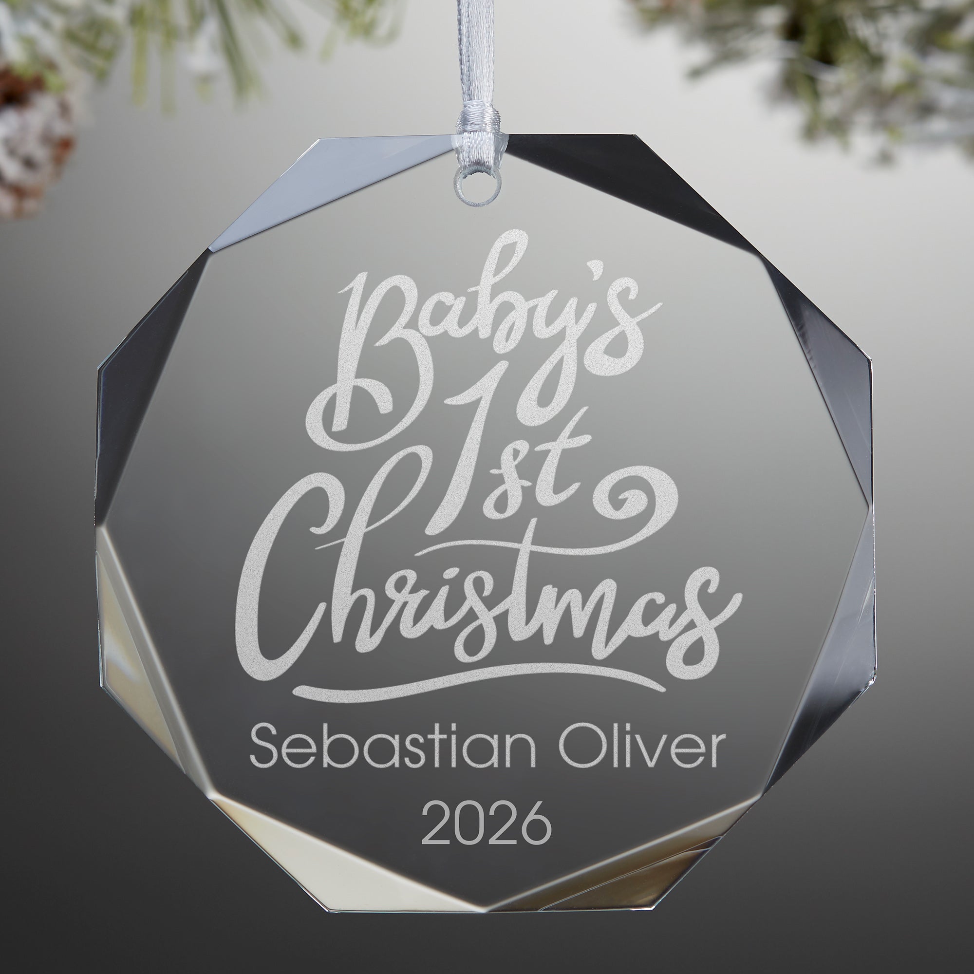 Personalize our elegant Baby's First Christmas Premium Engraved Ornament to commemorate their first Christmas ever this holiday season. This engraved glass ornament is a wonderful gift for new parents and baby.