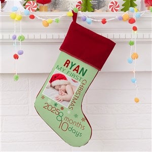 Celebrate your baby's first Christmas by displaying how old they will be on Christmas Day with our Baby's First Christmas Personalized Photo Stockings.