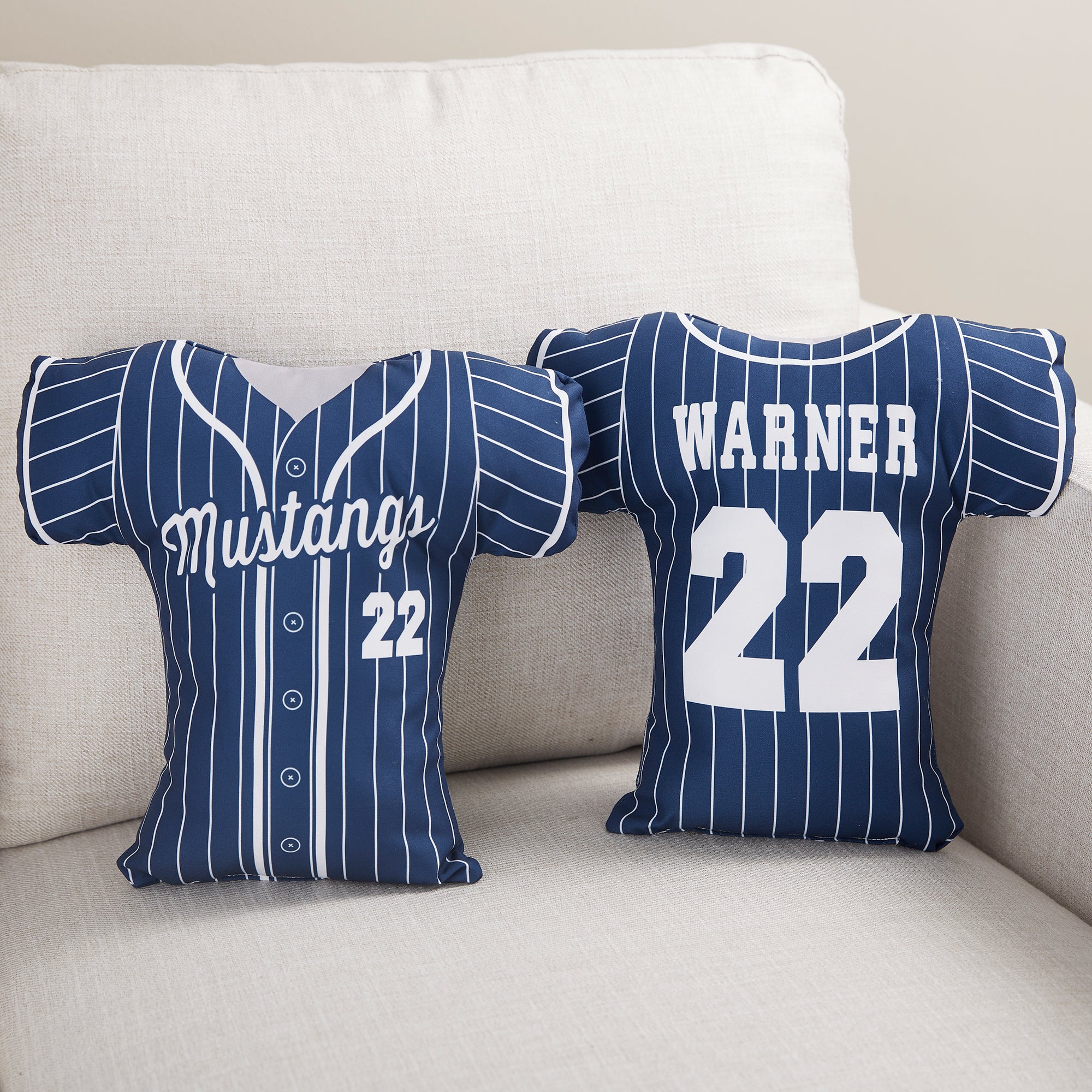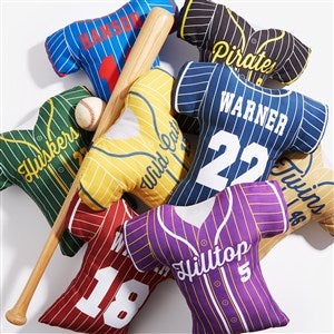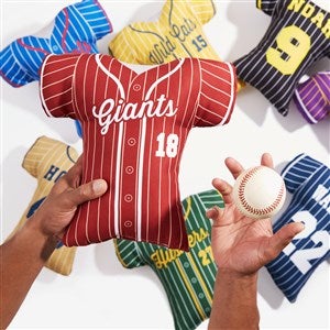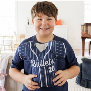 They will feel like they are the MVP with the Baseball Jersey Personalized Throw Pillows displayed on their bed or chair. The pillow depicts a jersey making them feel like they are suited up and ready to play their favorite sport. A perfect accent piece for any sports enthusiast.