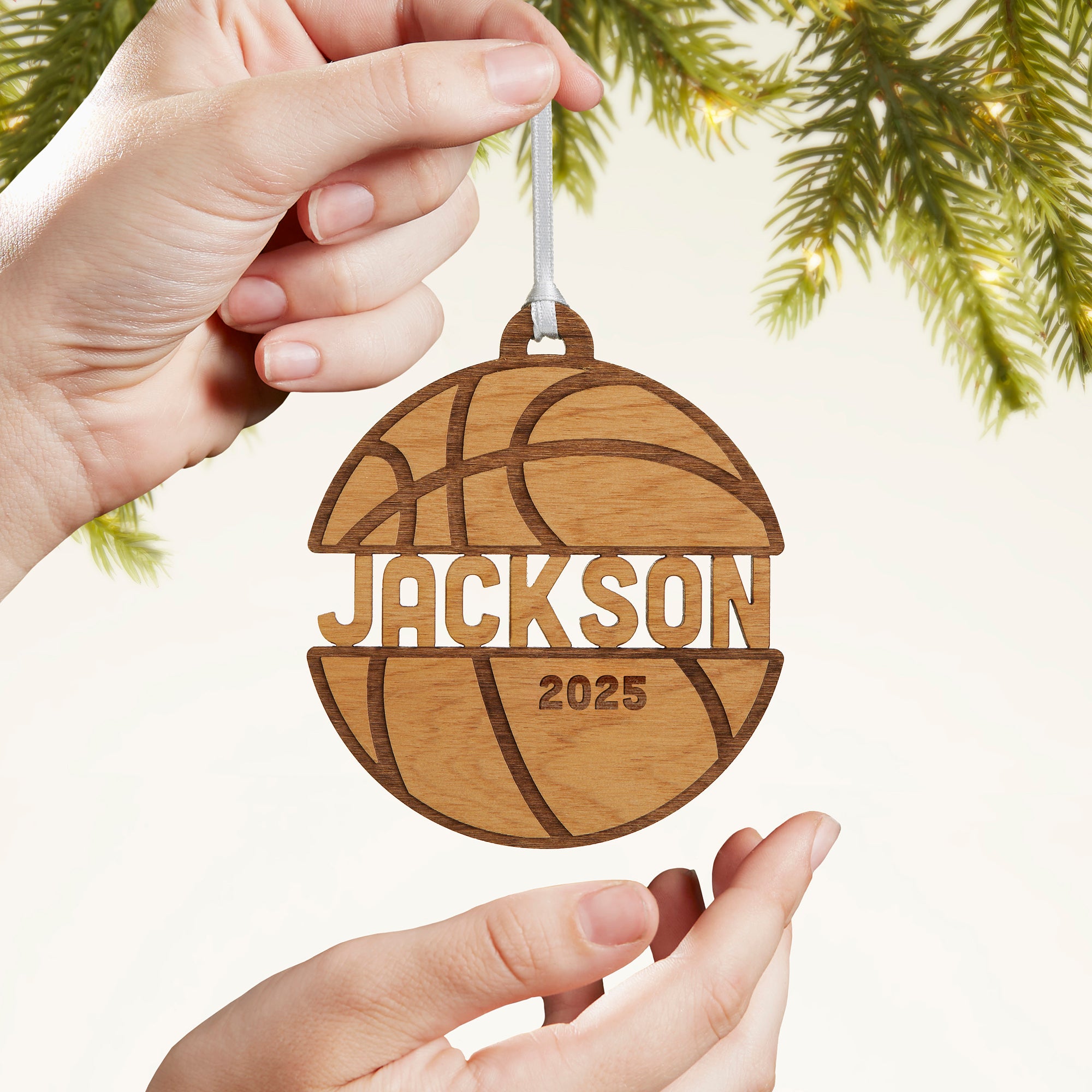 Product Information 49045-N - Basketball Personalized Wood Ornament- Natural