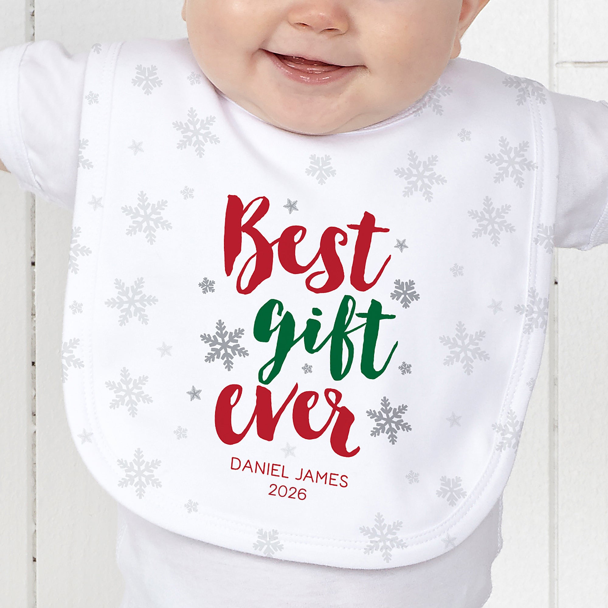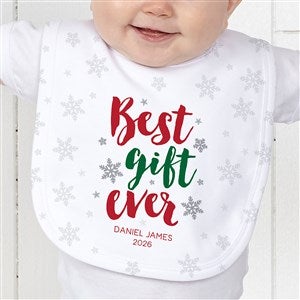 They will take center stage and attract adorable glances this holiday season when they are decked out in our Best Gift Ever Personalized Christmas Baby Bibs.