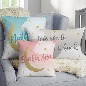 Our exclusive Beyond The Moon Personalized Throw Pillow is a great thoughtful and decorative piece for any nursery or children's room.