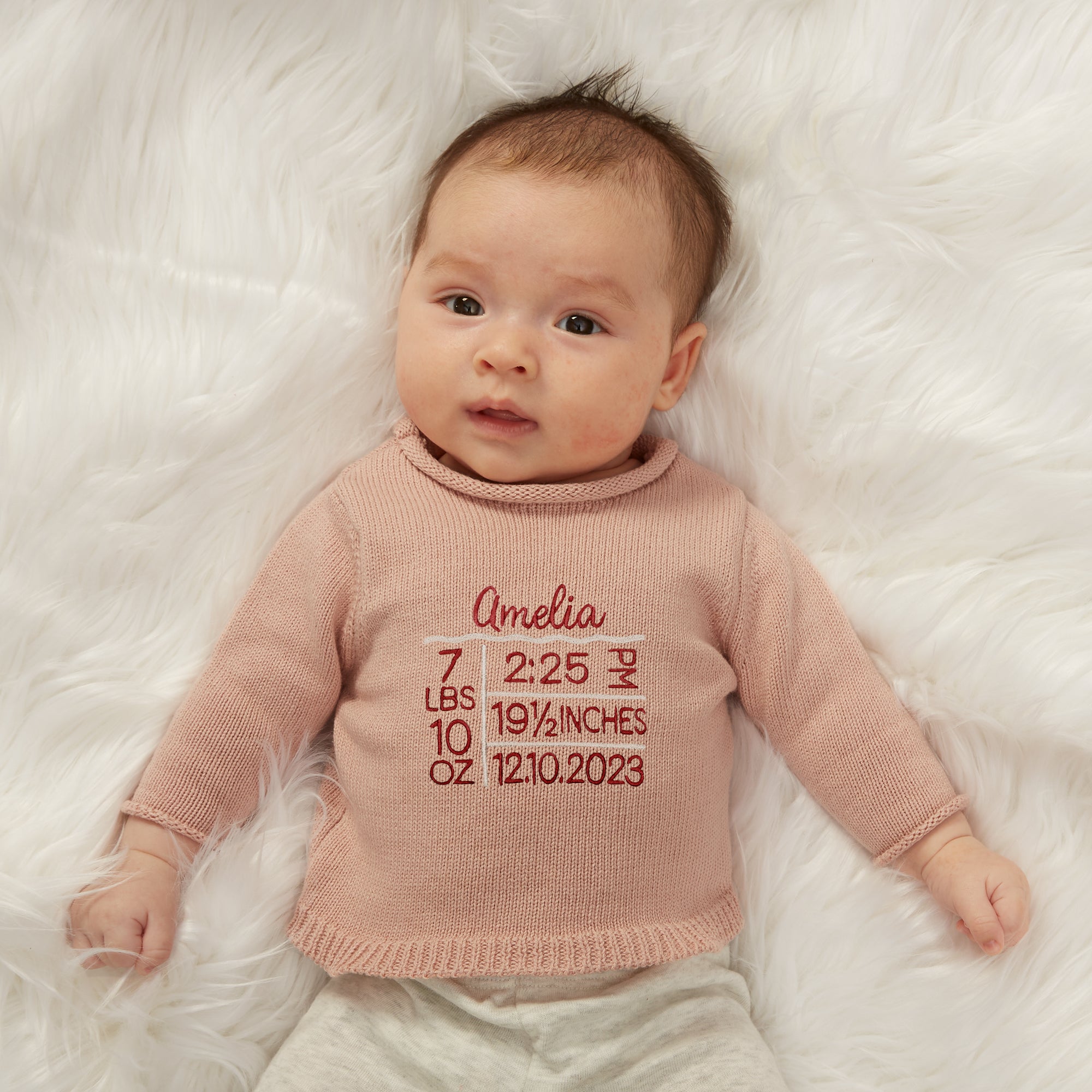 Product Information 46380 - Birth Info Embroidered Baby Sweater