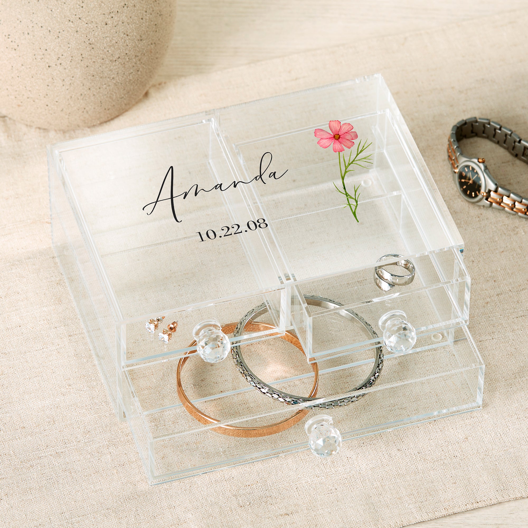 Birth Month Flower Personalized Acrylic Jewelry Box