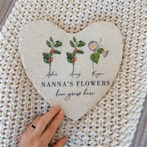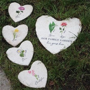 The Birth Month Flower Personalized Heart Garden Stones add a pop of color to any garden or walkway. Outdoor decor makes a wonderful gift for Mother's Day, Birthday, and many other occasions!