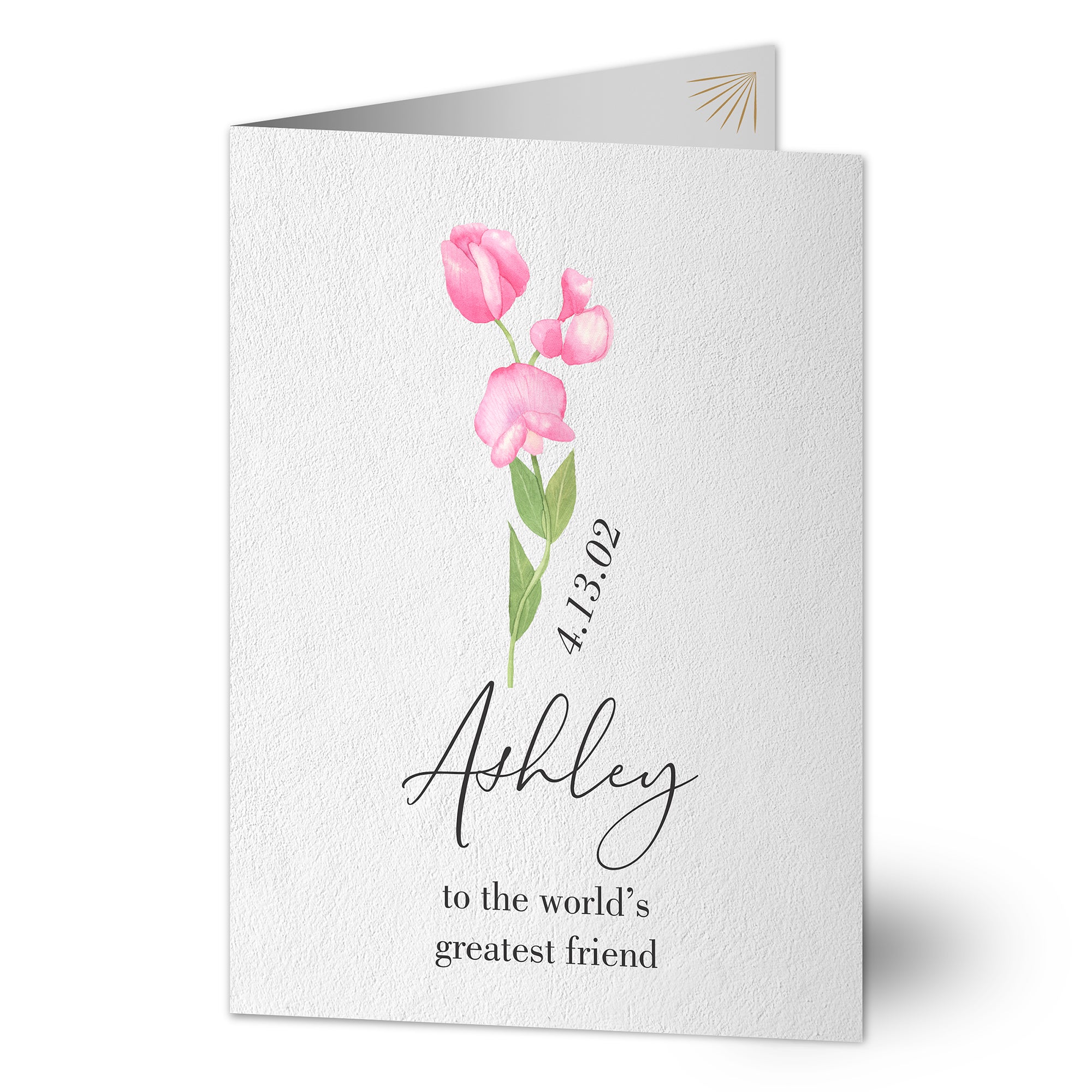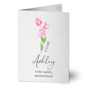 Celebrate that special someone in your life with our Birth Month Single Flower Personalized Greeting Card. Customize your card with your own message on the front and inside of your card, making it your very own!