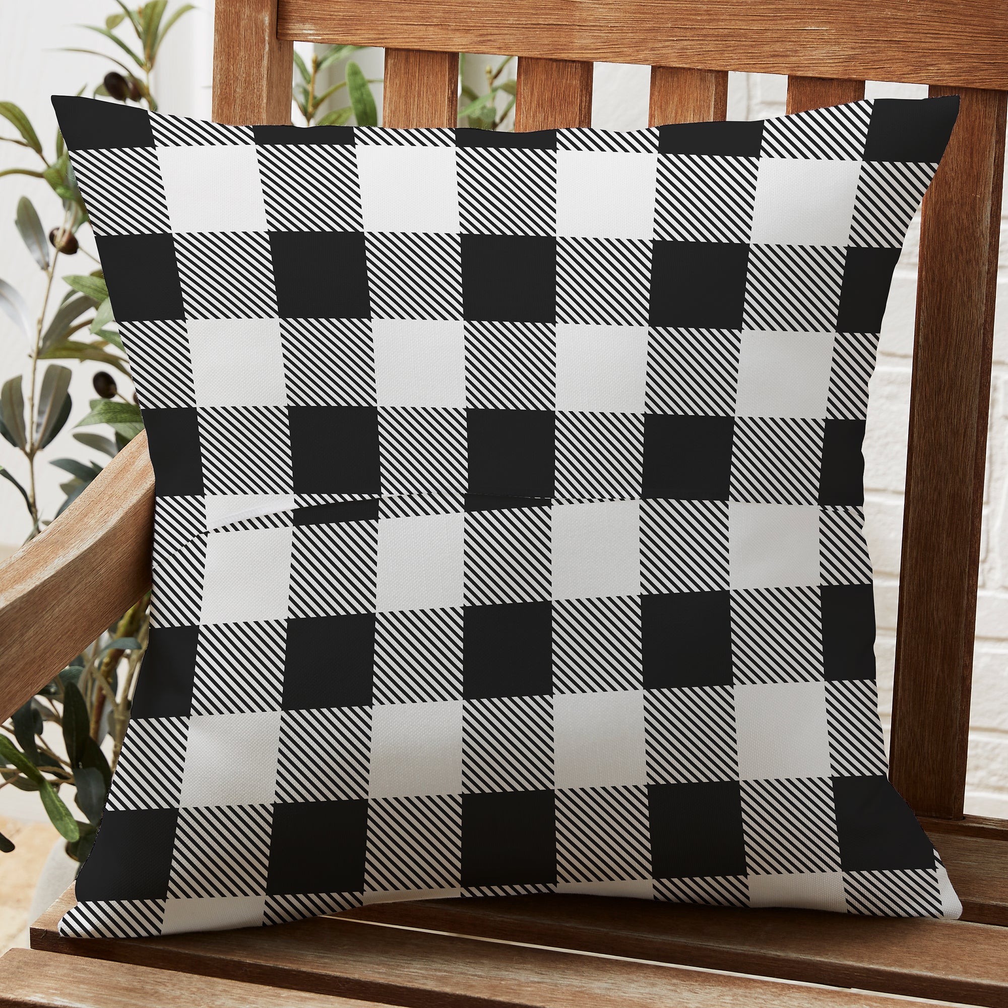 Black & White Buffalo Check Personalized Outdoor Throw Pillow