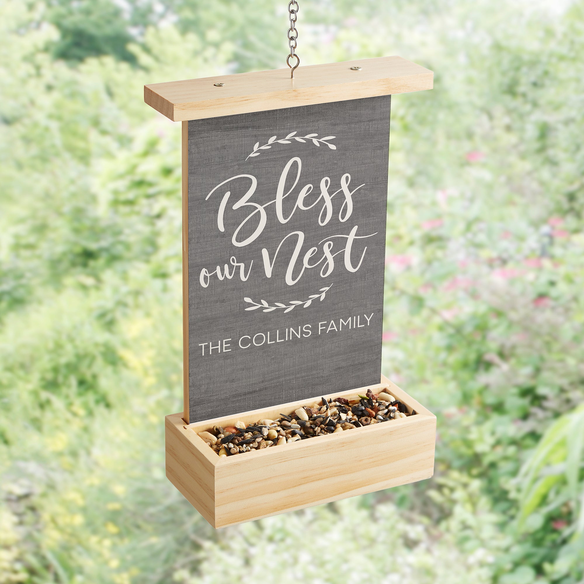 If you love bird watching, hang The Bless Our Nest Personalized Bird Feeder in your yard. The birds feeding will bring joy every time you look out the window.