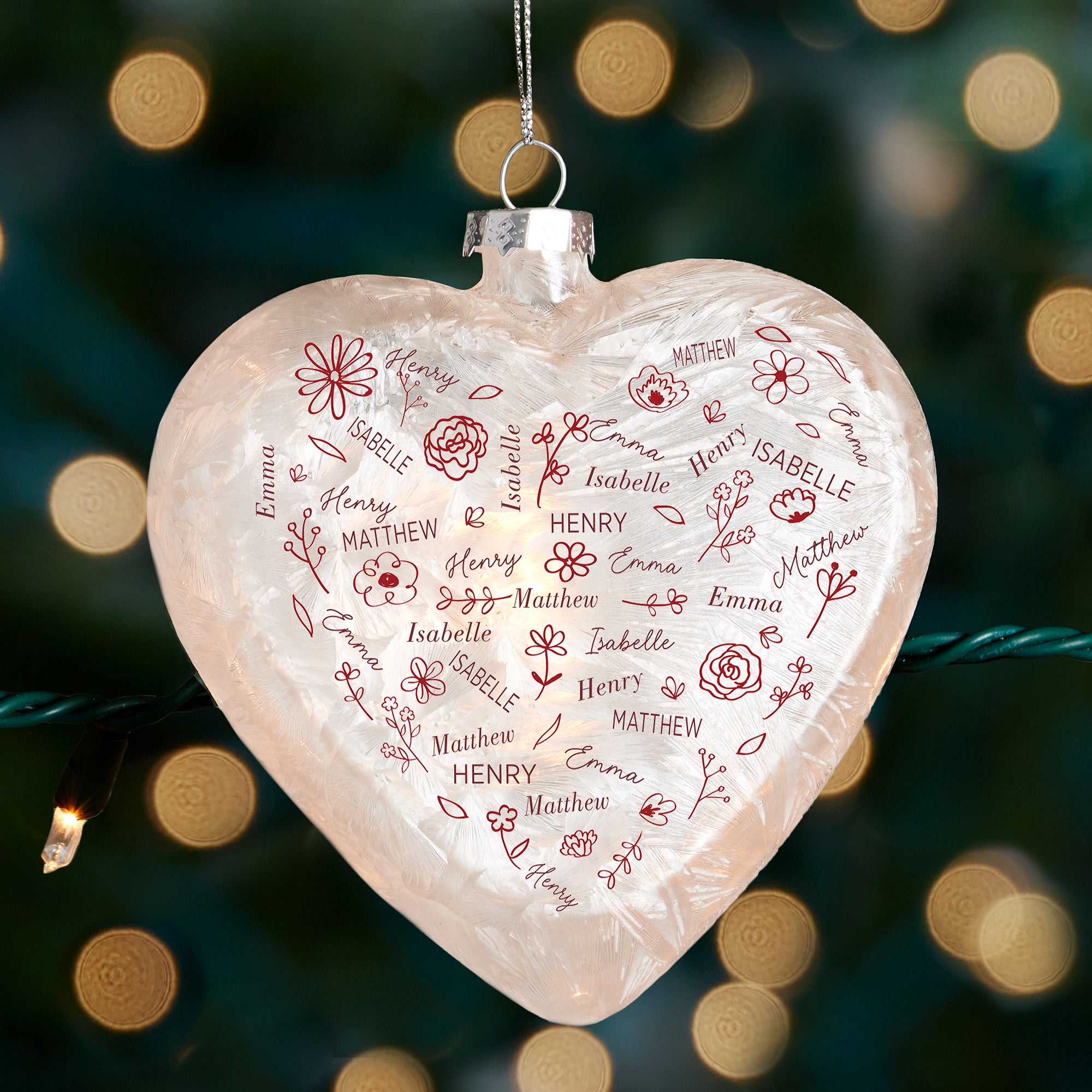 Blooming Heart Personalized Lightable Frosted Glass Heart Ornament