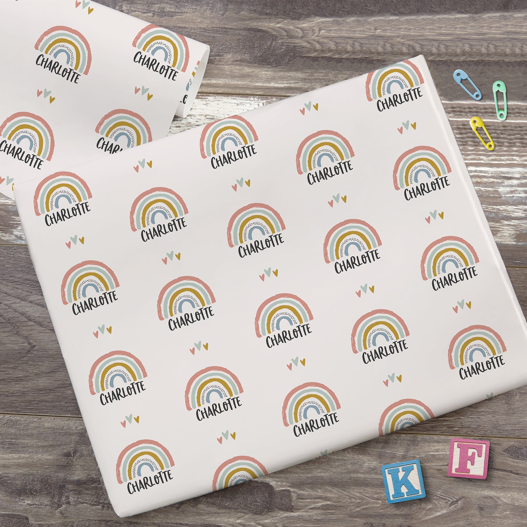 Our Boho Rainbow Personalized Baby Wrapping Paper adds a precious touch to any baby gifts. Everyone will know who the gift is from with this unique accessory, perfect for a newborn gift, baby shower and more!