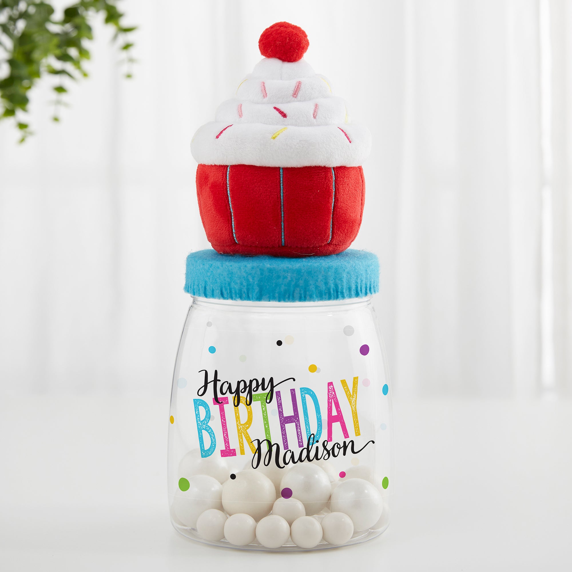 Fill our Bold Birthday Personalized Cupcake Candy Jar with candy, treats, or gift cards for that special Birthday Kid!