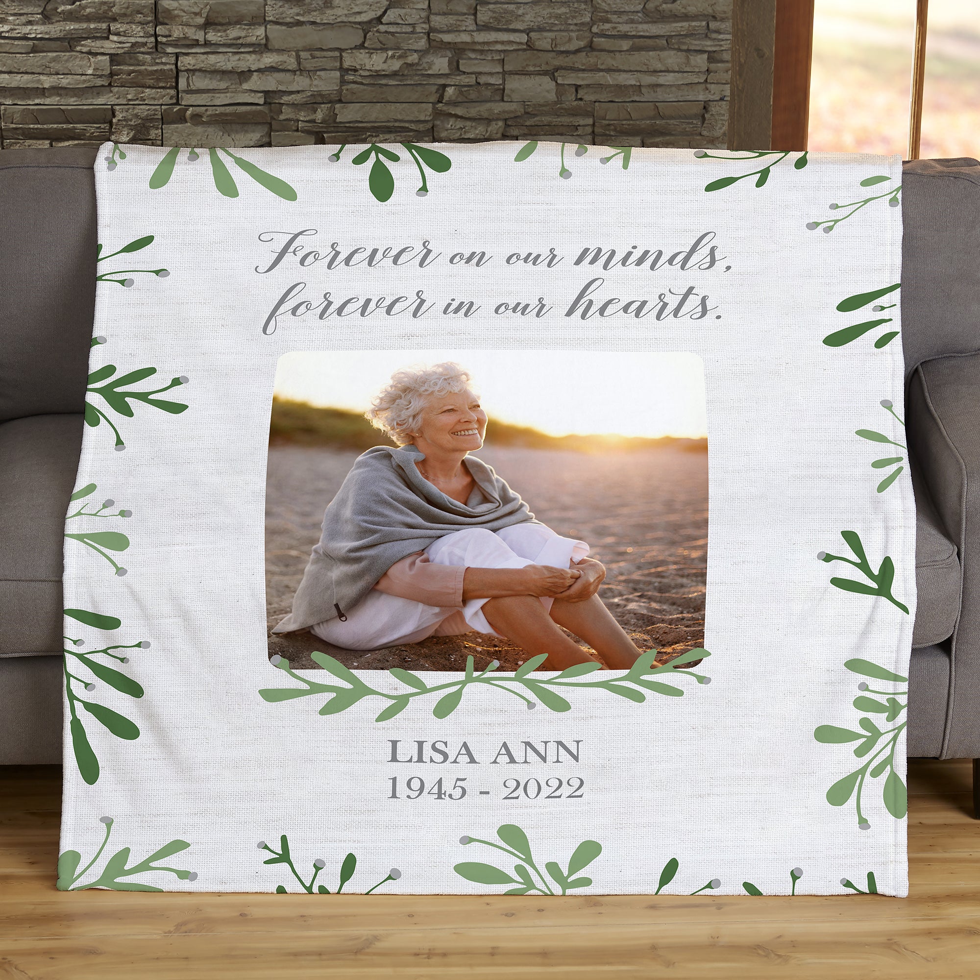 Keep their memory alive with our Botanical Memorial Personalized Photo Blanket. A subtle, yet beautiful way to honor and cherish the memory of a loved one.