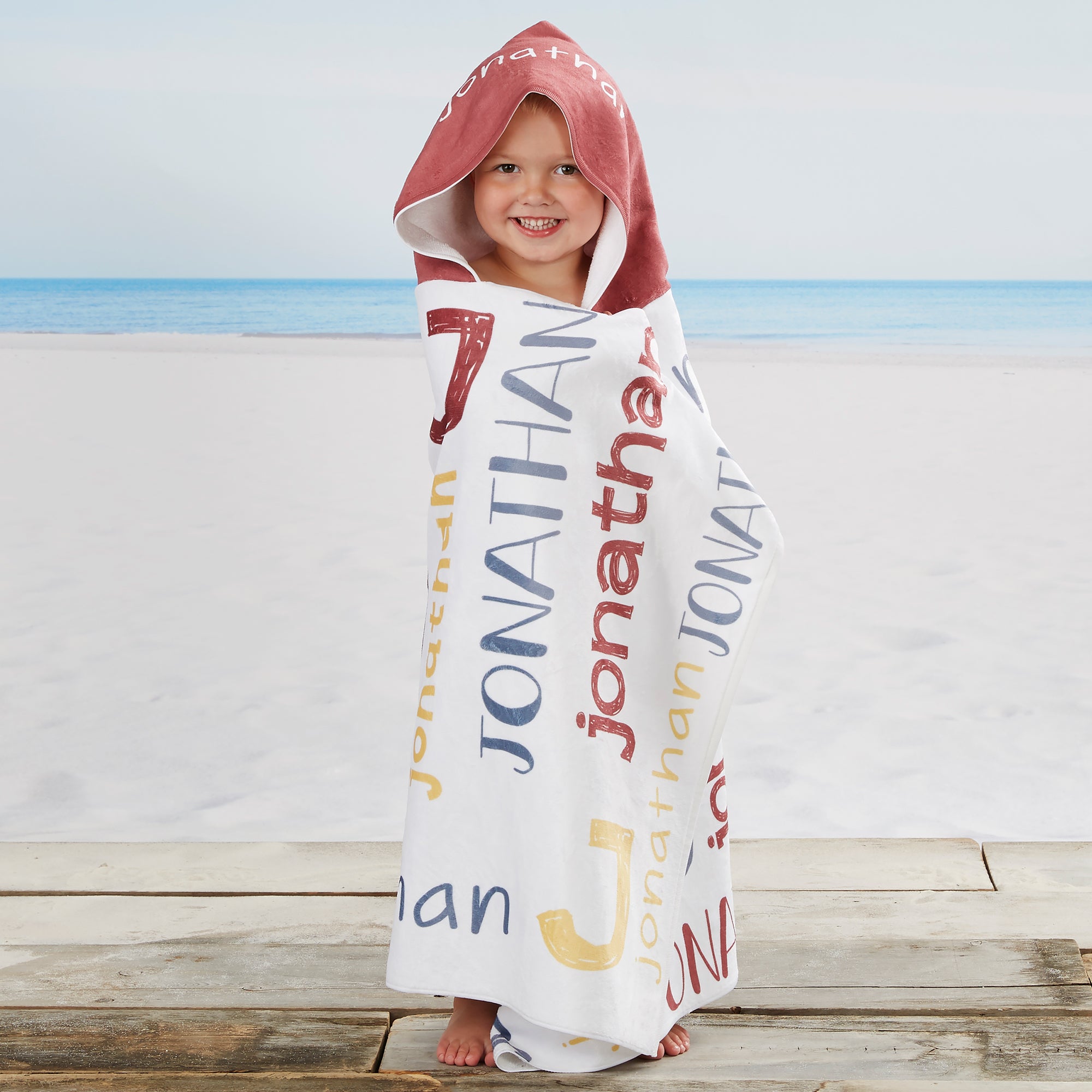 This personalized kids hooded towel makes for a fun bath piece for home, beach or pool side.