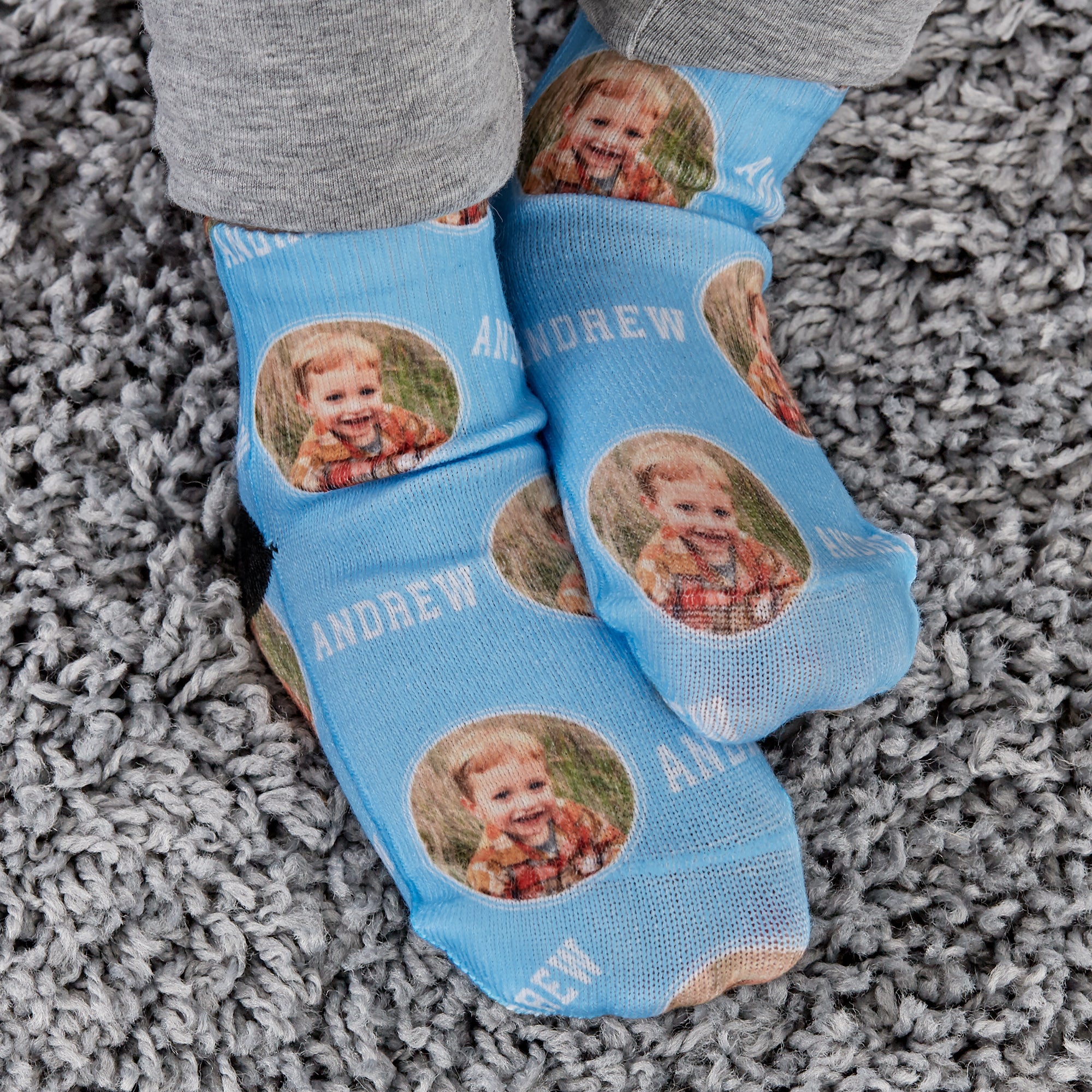 Give him a totally unique pair of socks with our Boy's Personalized Toddler Photo Socks. A great pair of socks can add an eye-catching detail to any outfit.