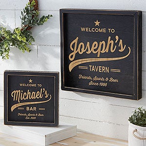 Decorate your bar area with the Brewing Co. Personalized Distressed Black Wood Frame Wall Art. The laser engraved black wood is framed with a distressed edged wood frame. Can hang on the wall or stand on a shelf.