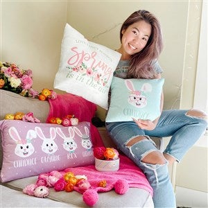 Add some spring cheer to your chair or sofa with our Build Your Own Bunny Personalized Easter Throw Pillow. The printed bunny design is sure to add a pop of color to any home décor.