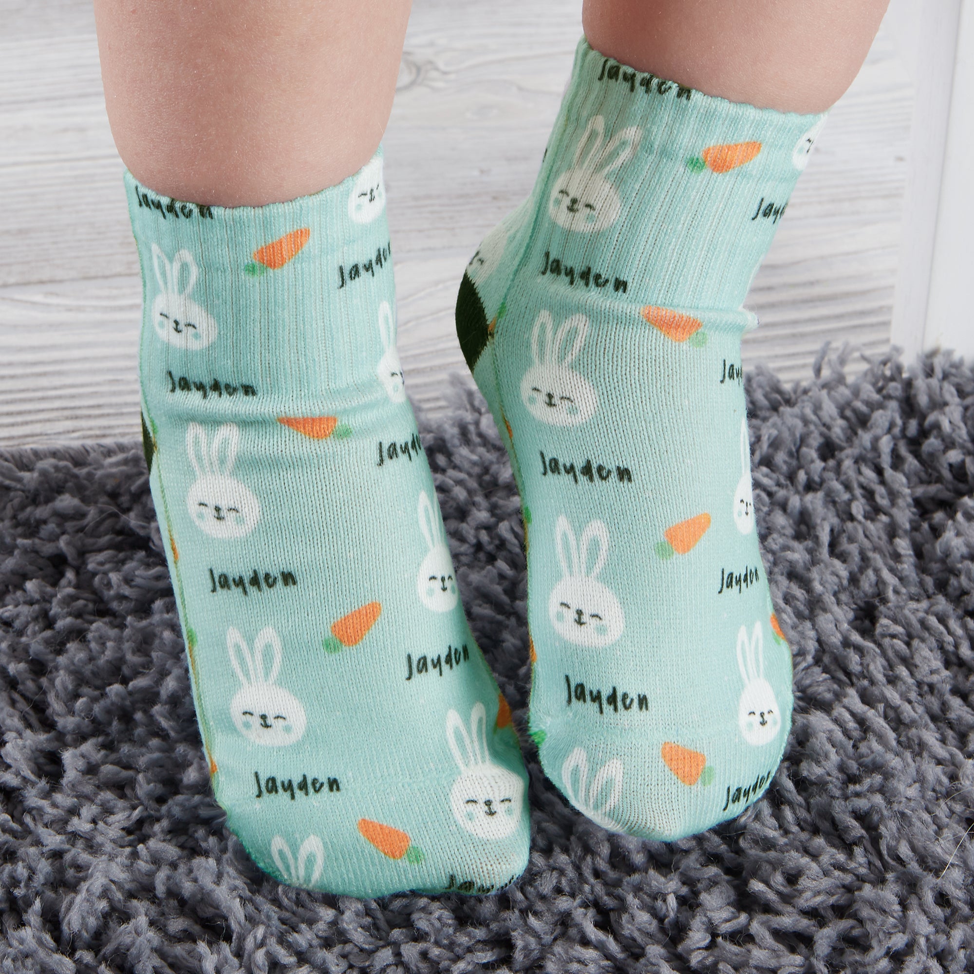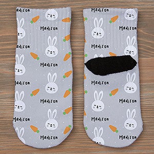 Stuff their Easter basket with a totally unique pair of socks with our Bunny Treats Personalized Toddler Socks. This fun pair of personalized socks adds a special touch to any outfit.
