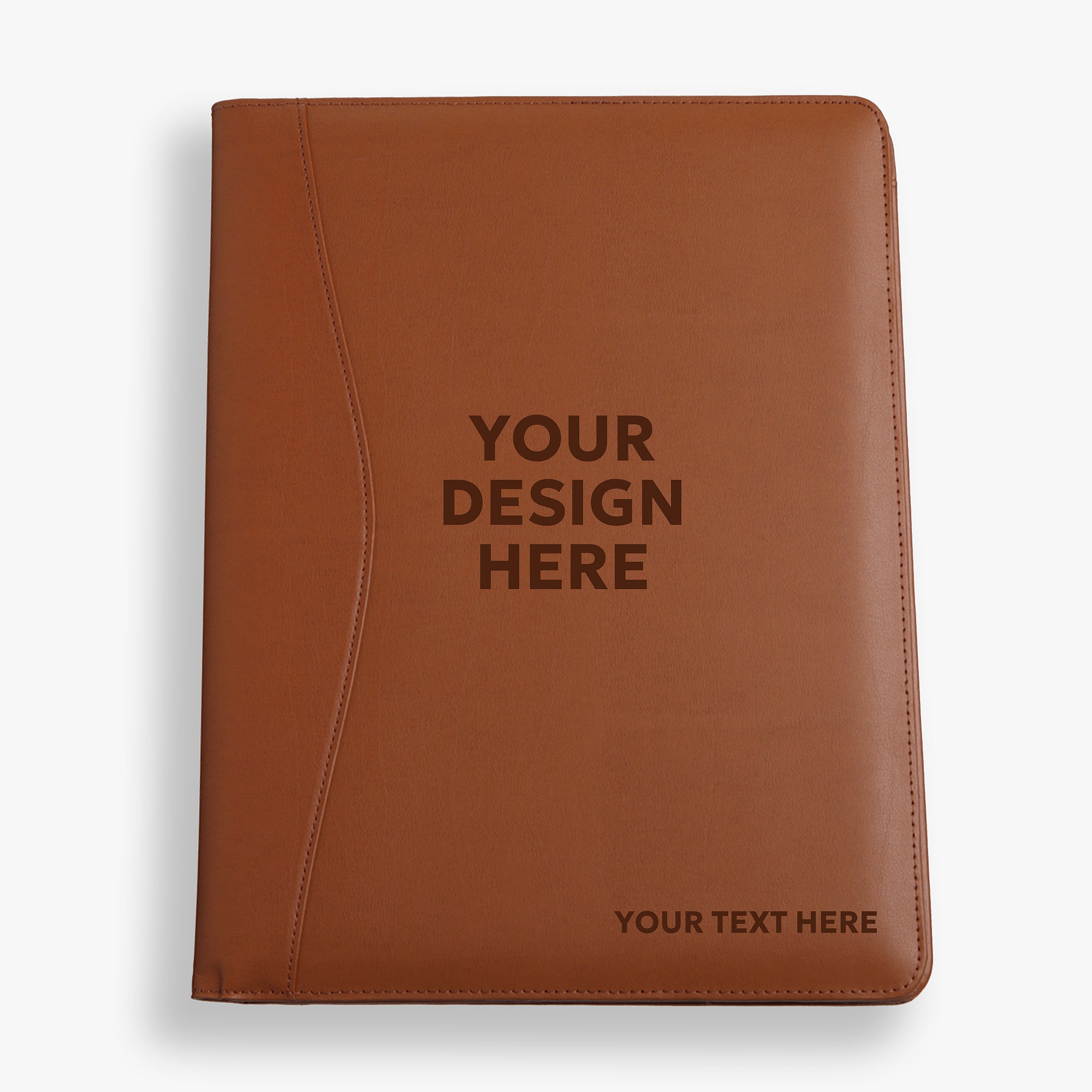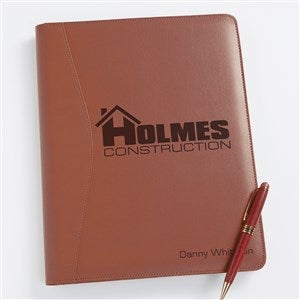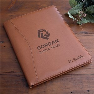 Our padded, bonded leather custom engraved logo portfolio will give a notable impression to clients during business meetings. They are a great corporate gift idea for employees, executives, and customers. Perfect for employee and customer giveaways.Complete with 3 storage pockets, business-card pocket, 8½" x 11" notepad, and pen holder— this portfolio emanates a very professional appearance, showing off your corporate logo at business meetings.