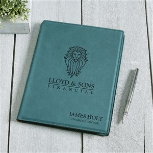On a conference table or carried into a meeting, our Personalized Logo Teal Junior Notepad makes an impressive statement. Personalize the front of this handsome notepad with any logo and a name for a truly one of a kind gift.