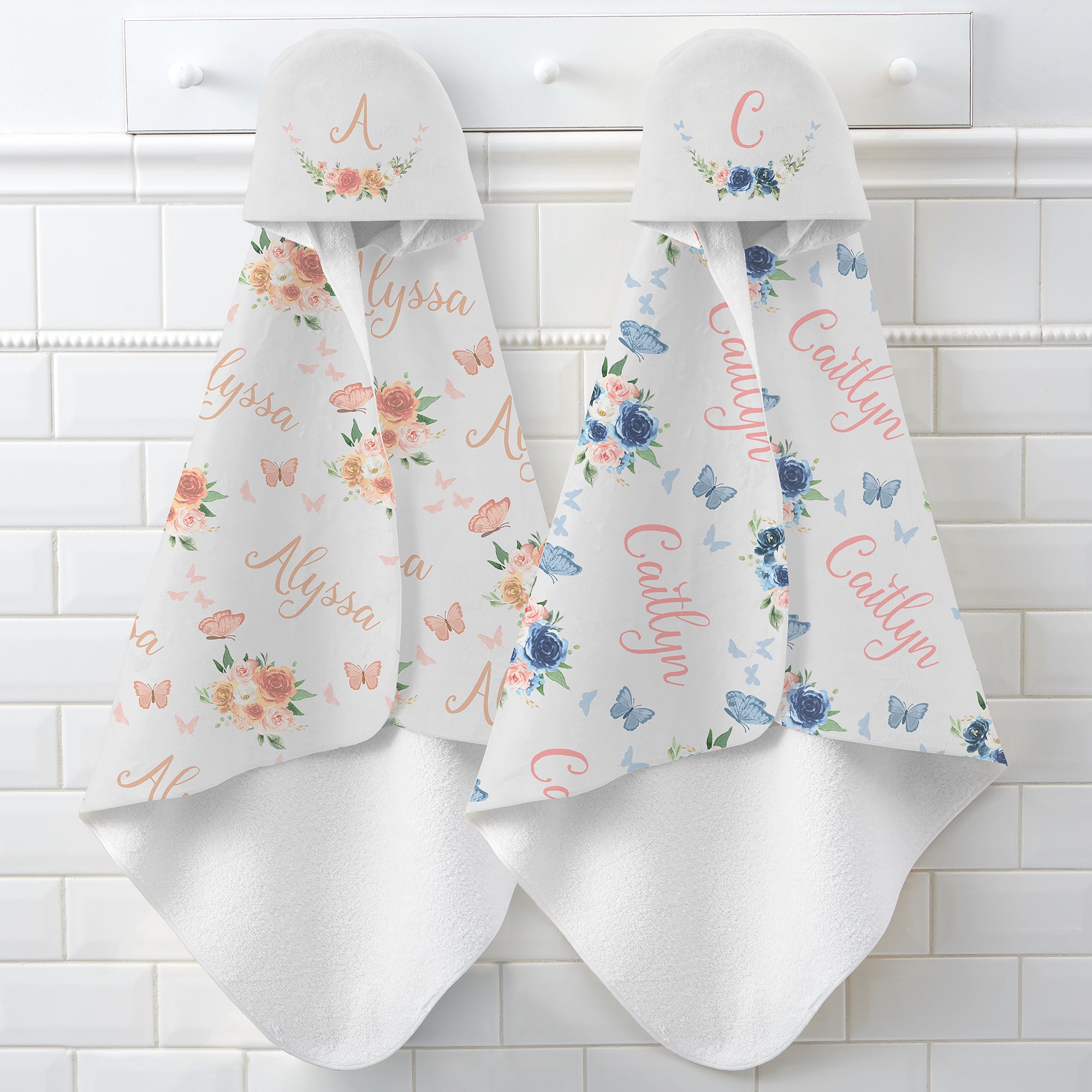 Butterfly Kisses Baby Girl Personalized Baby Hooded Towel