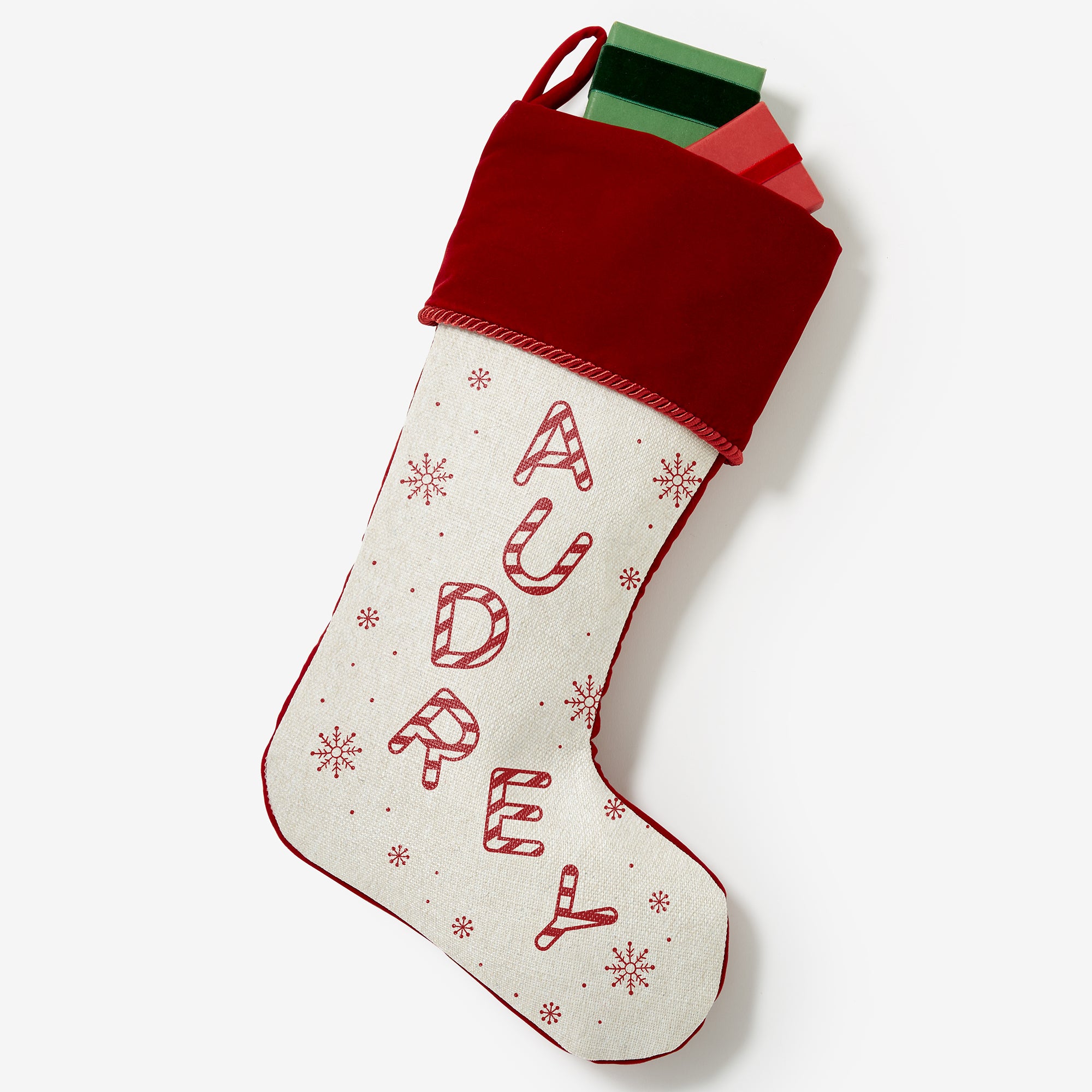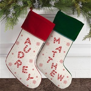 Make a whimsical and warm addition to your holiday home this year and every year with our Candy Cane Lane Personalized Christmas Stocking.
