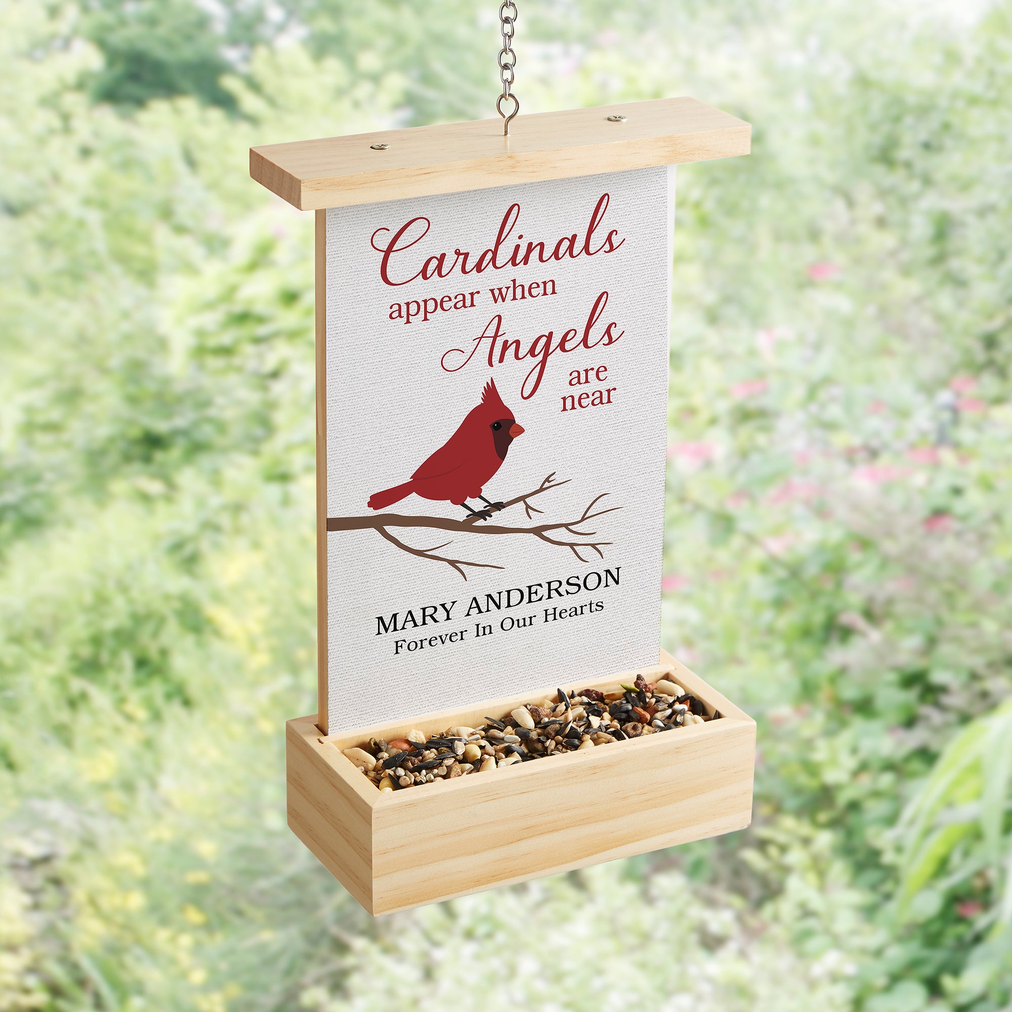 Keep an eye out for cardinals paying a visit with the Cardinal Memorial Personalized Bird Feeder displayed in your yard. The birds feeding will be a beautiful reminder that your loved ones are watching over you.