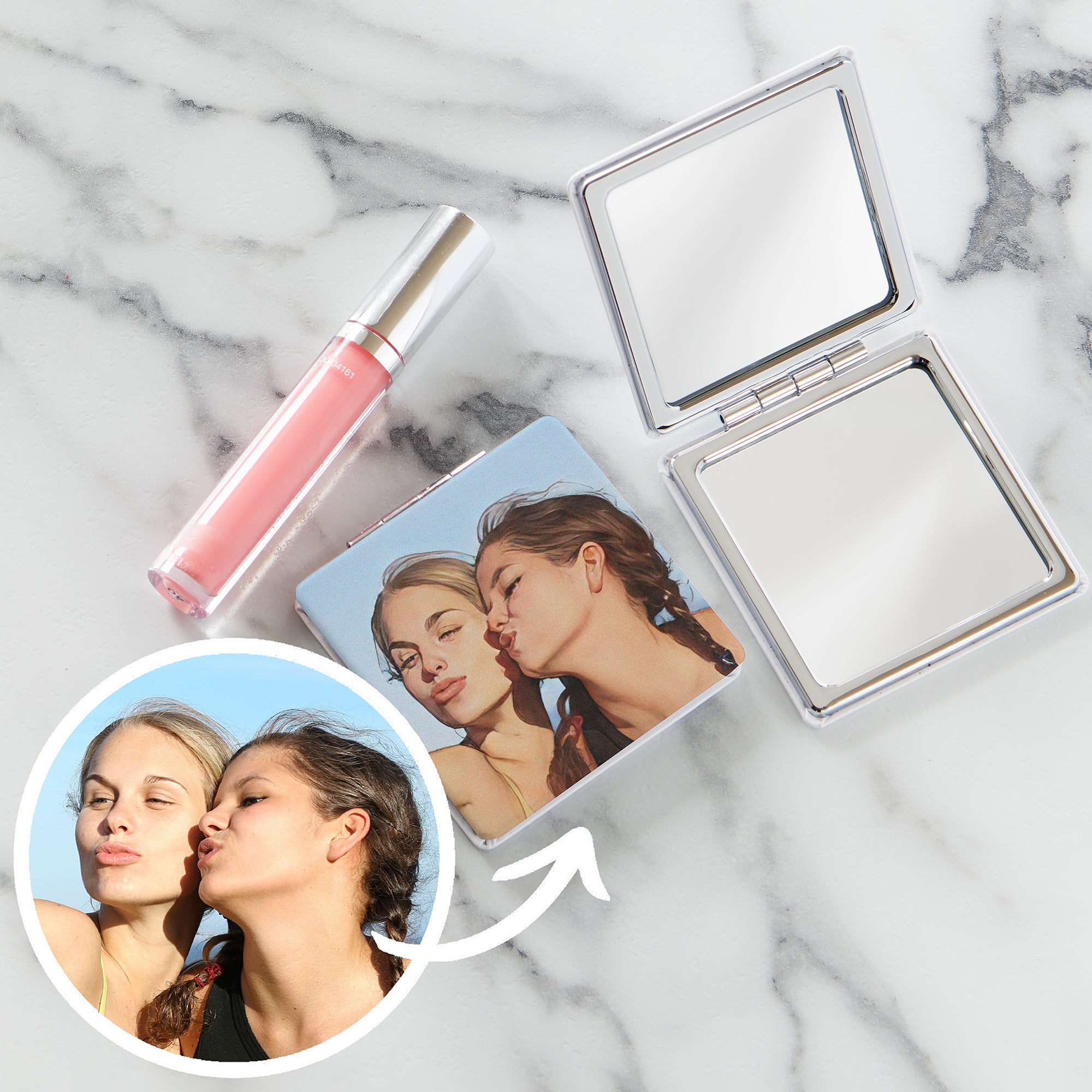 The Cartoon Yourself Personalized Photo Compact Mirror will be a true reflection of her beauty. This essential accessory was designed for women on the go. Upload any photo and watch it transform into a cartoon rendering of your image.