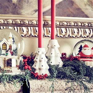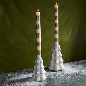 This Large White Ceramic Tree Candle Holder is the perfect addition to any holiday table. Simply add a taper candle of your choice and enjoy! There is a light switch on the base if you'd like to enjoy the additional light from within.