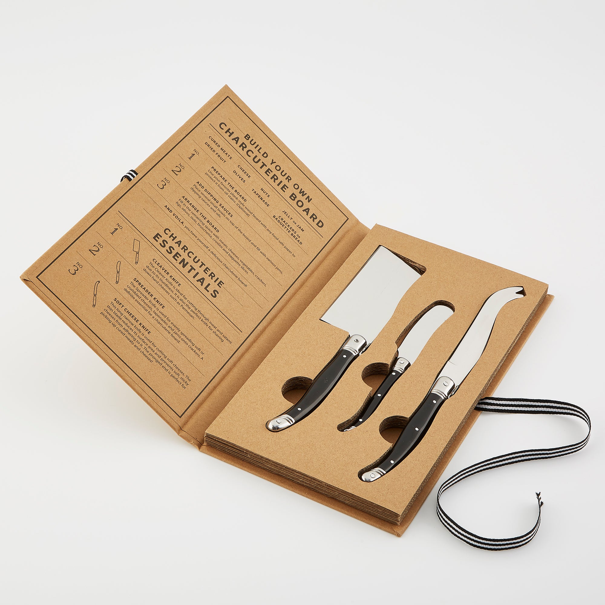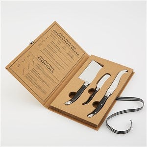 - The inside of the box has printed instructions for building charcuterie boards and information about each knife