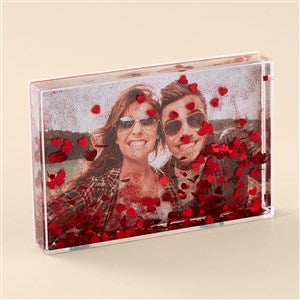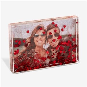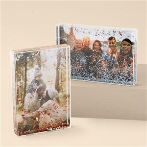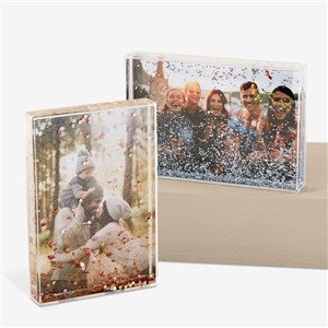 Make your memories even more magical by uploading any photo to the Cherished Memories Personalized 4x6 Photo Glitter Block. The glitter block is a great way to display special moments. Shake it like a snow globe to watch the glitter in action. It's the perfect present for any occasion and will add some sparkle anywhere it is displayed.